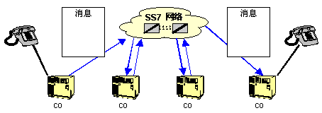 下面圖示SS7信令系統(tǒng)的呼叫流程: