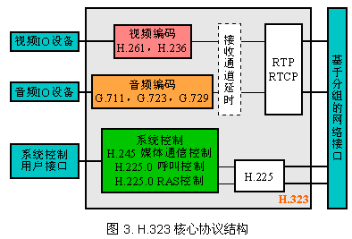 H.323是最早被采納的VoIP標(biāo)準(zhǔn)。H.323協(xié)議體系規(guī)定了基于分組網(wǎng)進(jìn)行兩點(diǎn)/多點(diǎn)實(shí)時(shí)媒體通信的系統(tǒng)邏輯組件、消息定義和通信過程。