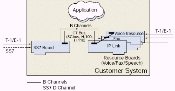 其它 T-1/E-1 通道被語音板卡管理,可通過CTbus路由到七號(hào)信令板卡