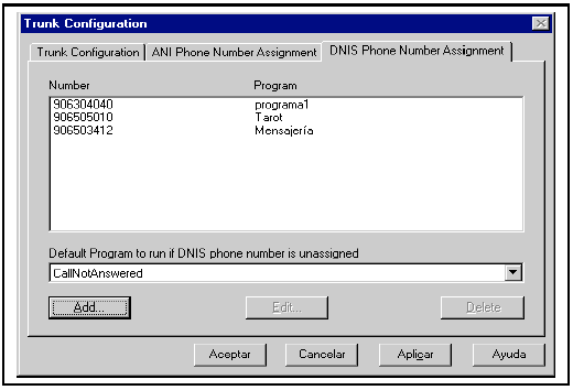 對于其他的DNIS或ANIS(沒有列出),可以關聯(lián)一個程序或者拒絕呼入。