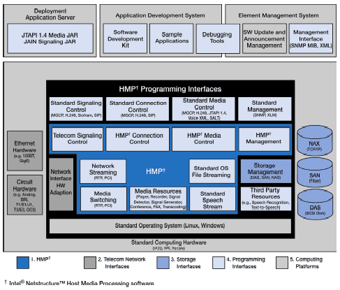 (HMP)軟件產(chǎn)品,用于在基于Dialogic構(gòu)架之上的普通服務(wù)器上進行媒體處理任務(wù),而無需專門的硬件支持。使用該軟件提供的媒體服務(wù),能夠構(gòu)建出靈活的、可擴充的、低成本的下一代IP媒體服務(wù)器。